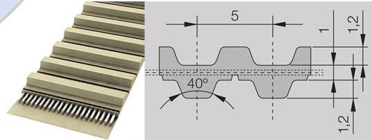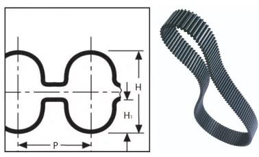 Основные материалы: Термопластичный полиуретан в сочетании со стальным кордом. Характеристики: Пониженный уровень шума. Высокая стойкость к истиранию. Высокая гибкость. Материал ремня устойчив к усталостным явлениям и старению. Хорошая устойчивость к износу, гидролизу, воздействию УФ-лучей, а также озоностойкость. Рабочая температура: от -25 °C до +80 °C (до +110 °C краткосрочно). Хорошая устойчивость к воздействию масел, смазок и жиров. Хорошая устойчивость к воздействию большинства кислот и щелочей. Стойкие к воздействию большинства очищающих средств, воды и влажной среды.